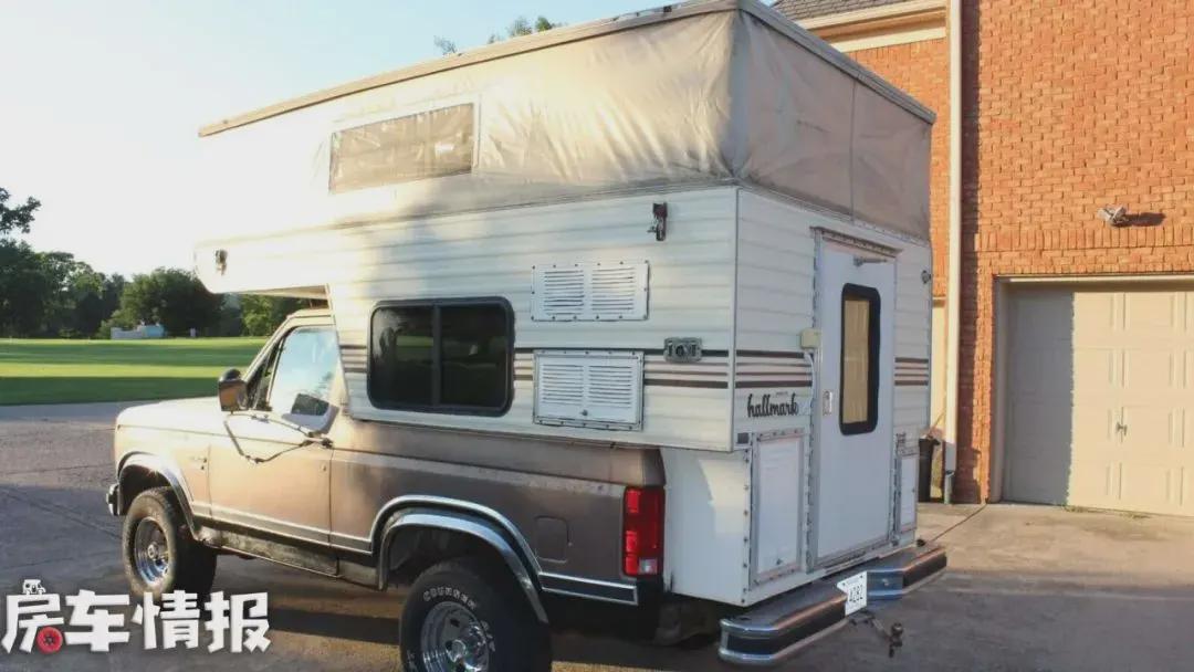 这款皮卡房车是基于福特烈马底盘打造,是一款不论从时间还是外观上都比较复古的车了。