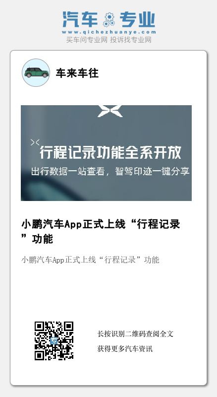 近日,小鹏汽车宣布App上线行程记录功能,功能面向全系车型开放,将小鹏汽车App升级至4.31.0版本及以上,即可查看行程数据。