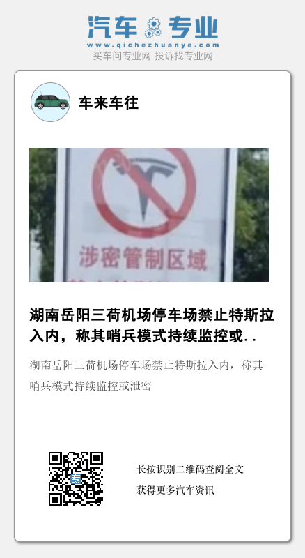 湖南岳阳三荷机场停车场禁止特斯拉入内引发关注。8月13日下午,该机场工作人员告诉南都记者确有相关规定,因特斯拉有哨兵模式,“存在泄密的风险”。据特斯拉官方平台介绍,在车辆锁闭、哨兵模式开启后,会通过前视摄像头、两侧翼子板摄像头和后视摄像头持续监控周围环境,并保存相关视频影像。