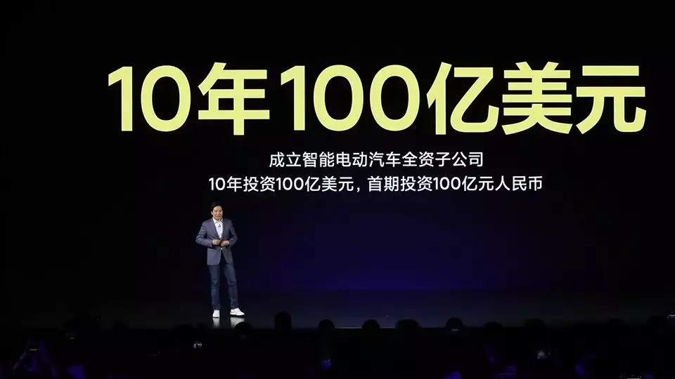 雷军在2021年的表述是,小米造车将在10年投资100亿美元,首期投入100亿元人民币;