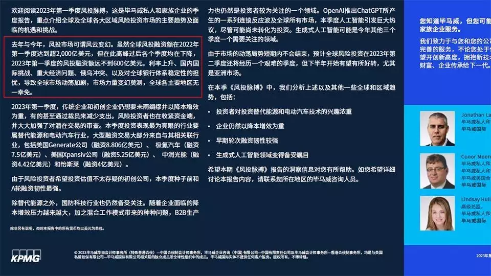 一直以来造车新势力们主要依赖的风险投资领域,情况要比股市更惨烈。按毕马威的2023第一季度统计,全球风险投资金额甚至达不到腰斩水平,融资额从2022年的2000亿美元,跌落至今年的573亿美元。