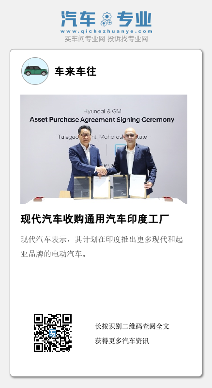 现代汽车印度子公司将收购通用汽车位于印度西部马哈拉施特拉邦(Maharashtra)的Talegaon工厂。此次交易将使通用汽车得以退出印度,同时提高现代汽车在印度的产量。