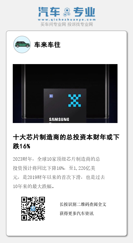 据《日经网》报道,2023财年,全球10家顶级芯片制造商的总投资预计将同比下降16%,至1,220亿美元,是2019财年以来的首次下滑,也是过去10年来的最大跌幅。
