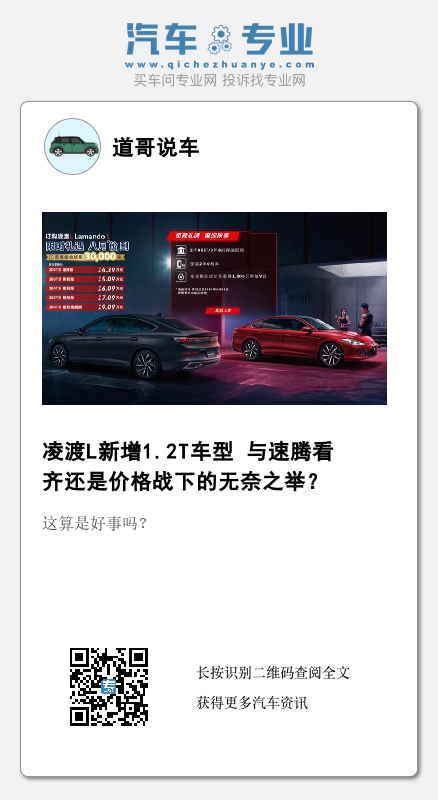 在此背景下,汽车品牌们大抵只有两种选择,其一就是直接降价,或终端优惠或品牌直降,其二就是推出配置更低的车型拉低入门门槛,或者给一些购车权益之类的。而凌渡L的1.2T车型放在现如今的市场环境中,显然更像是后者。