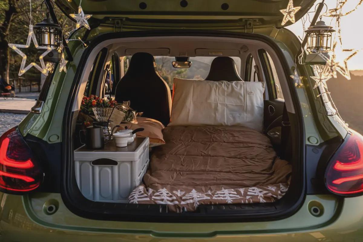 空间上,缤果不光是三围要更合理、整体更大,它达到2560mm的轴距也能放大车辆的空间优势。特别是在后排,缤果不光拥有更高的车顶,它的皮质座椅还支持5/5比例调节,三口之家的出行能容纳下更多随行行李,就在车舱拿取一些小物件也更方便。此外,缤果还有同级唯一的下沉式后备厢,上下分层置物除了更整洁、便利外,还能通过定制储物箱放一些易碎或贵重物品,后备厢功能性就比海鸥、哪吒AYA高出了许多。