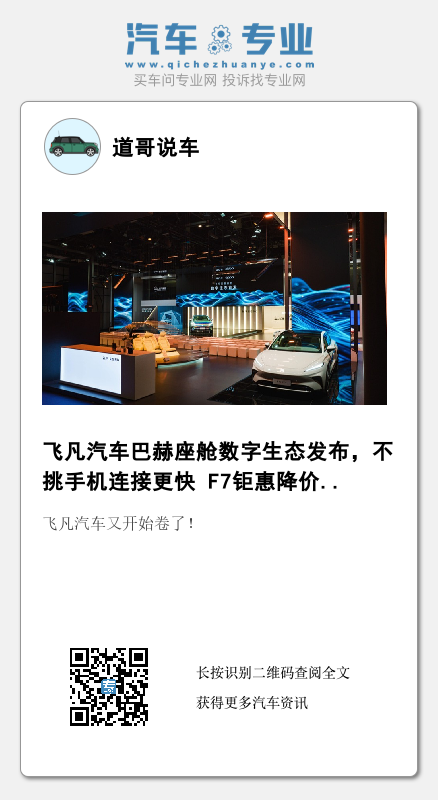 值得一提的是,本次车展,飞凡汽车同步公布全国范围内飞凡F7“限量钜惠季”限时政策,选择现车车价立减至高20,000元,选装立减至高12,000元。成都车展现场定车还能有机会成为OPPO旗舰手机FIND N3 FLIP超前尊享用户,享多重价值极智进阶。从产品价格上,进一步提升了飞凡F7的竞争力。