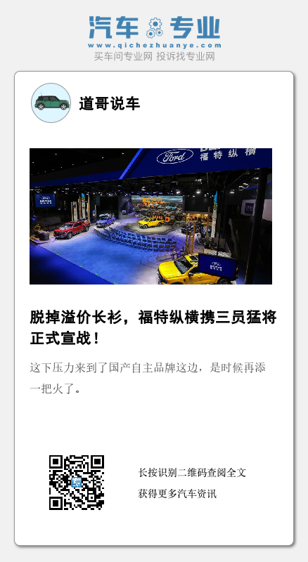 其实成都车展上新一代福特Ranger的起售价在网上掀起了不小的水花,有人觉得福特这个起步价是在试探市场,不行再降。但结合新引入的Bronco的网传价格来看,福特本就隐约有放弃品牌溢价的倾向,所以不必对态度已经明显的市场来一波不讨好的试探。