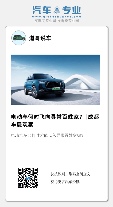不过不知道大家发现没有,即便参展车型够多、电动化车型也足够多,甚至有些车型精准到针对某一个细分再细分的市场。但真正能飞入寻常百姓家纯电动车却寥寥无几,纵观整个成都车展,能够从产品定位、价格等各方面综合考量代替部分燃油刚需车型的无非那么几个,如瑞虎7新能源冠军版、银河L6等,但这些都是插电混动车型。