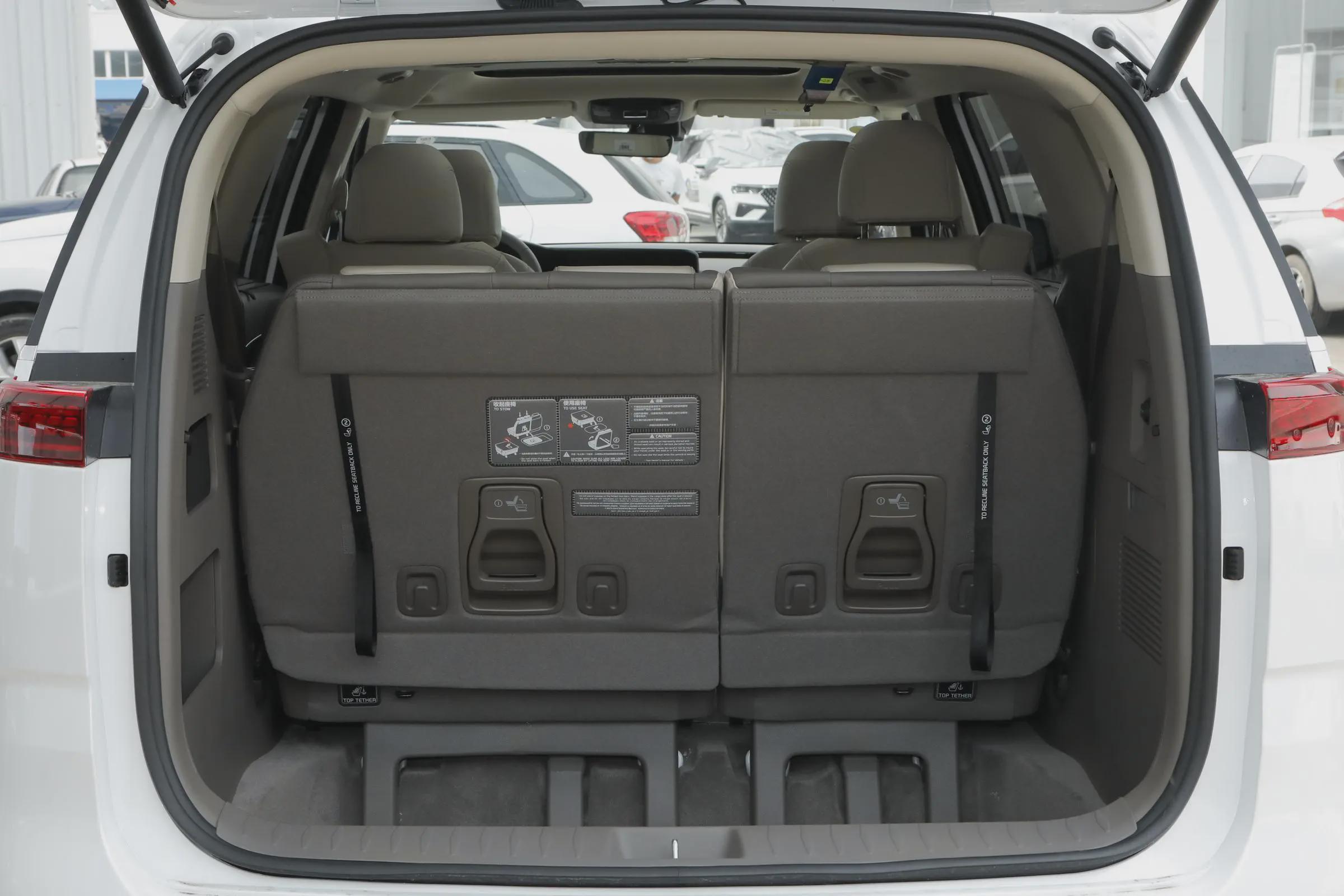 后备厢空间也是值得一说的,可以看出它的后备厢的底部做了一个下沉的掏空处理,让它即便在满载的情况下都还有着比较灵活的储物空间,另外它的第三排座椅还可以4/6比例放倒操作起来还是比较轻松的,可以说基本上可以做到一气呵成,同时如果把两侧都放倒之后可以形成一个接近平面的储物空间,这样的设计我个人觉得还是挺不错的。