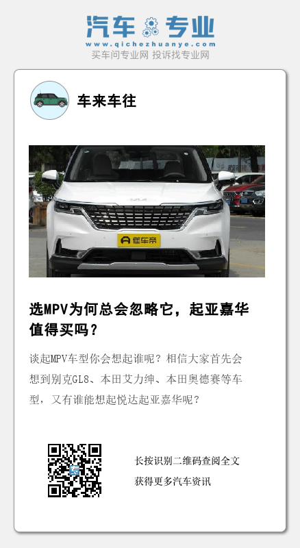 写在最后,起亚嘉华在相同的价位它能给我们消费者更多,无论是车内空间、后备厢便利性以及动力总成都符合国人的用车需求,所以说悦达起亚嘉华还是值得购买的。所以如果您比较关注性价比,想要在有限的预算内,买一辆配置齐全的MPV踏踏实实的开,那么起亚嘉华确实是个不错的合资MPV车型。