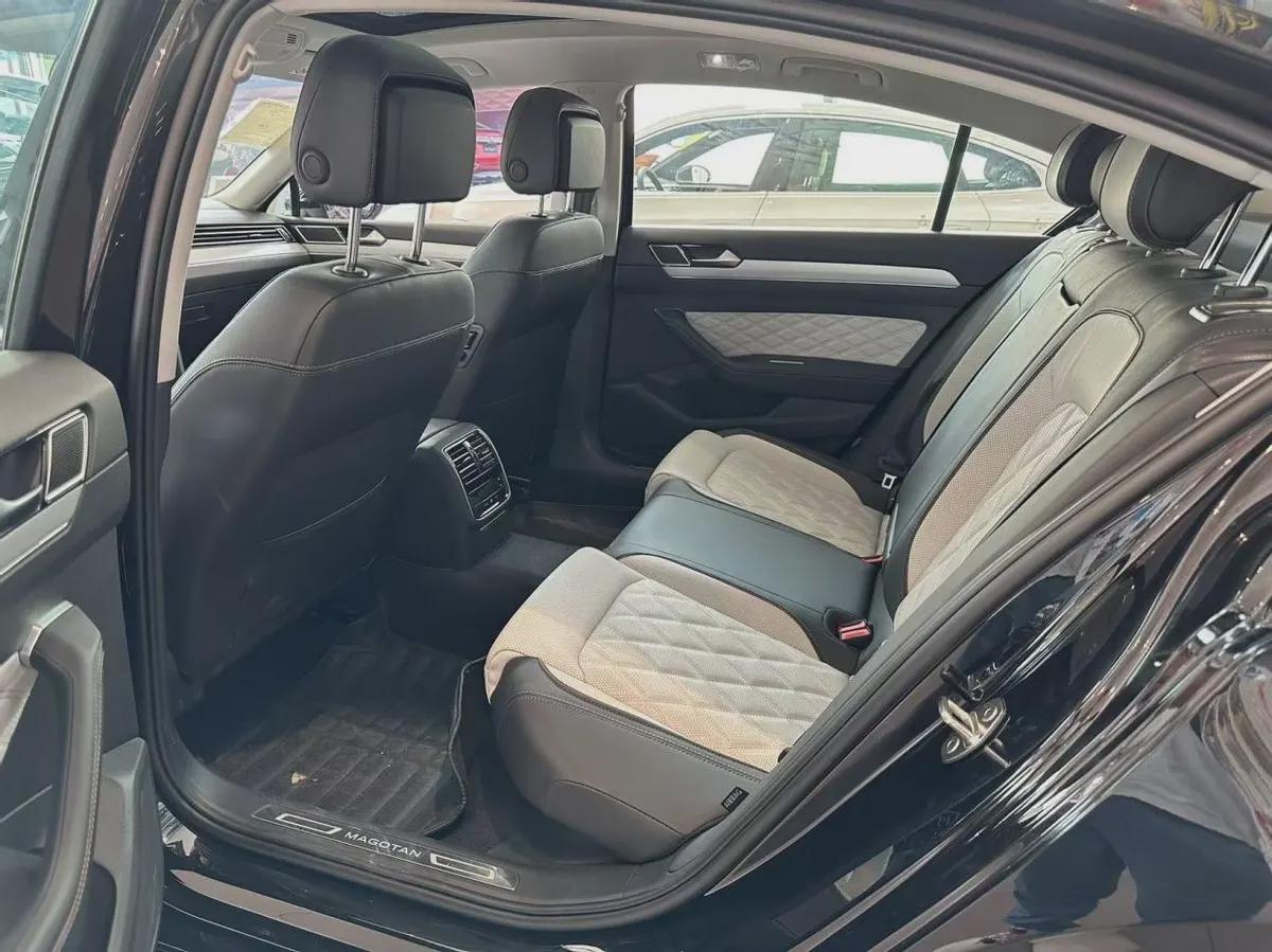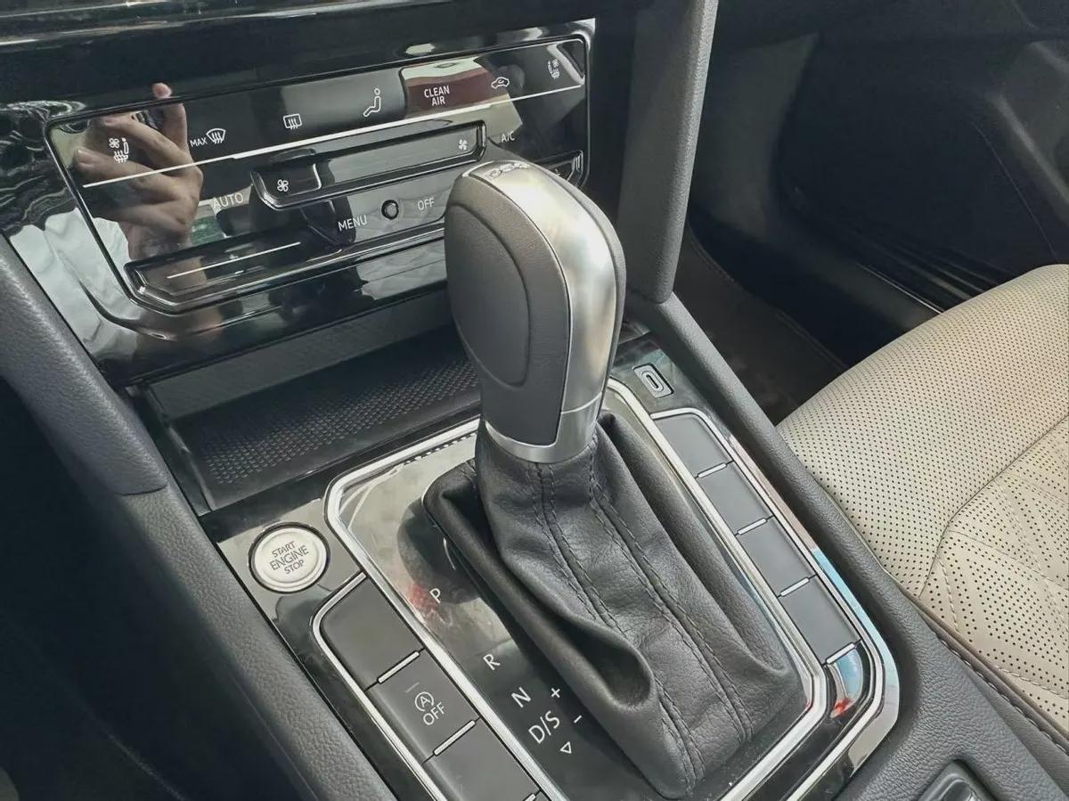 前排中控所采用的设计理念很经典,只是仪表台和中控区域使用的塑料件比较多。车门部位应用了很多软质材料的覆盖,储物格内使用翻毛绒材质覆盖。多功能方向盘的尺寸比较粗壮,两侧功能按键是触控感应的。两款高配车型标配全液晶仪表盘,其他车型则可以选装。两款高配车型的中控屏幕尺寸是9.2英寸,其他车型的中控屏幕尺寸是8英寸(支持选装9.2英寸屏幕)。配置方面全系车型都支持车联网和CarPlay手机互联,车机功能比较简单,没有任何的上手难度。屏幕上方有一块石英钟,这在迈腾车型上是比较经典的设计,同时也提升了内饰的档次感。