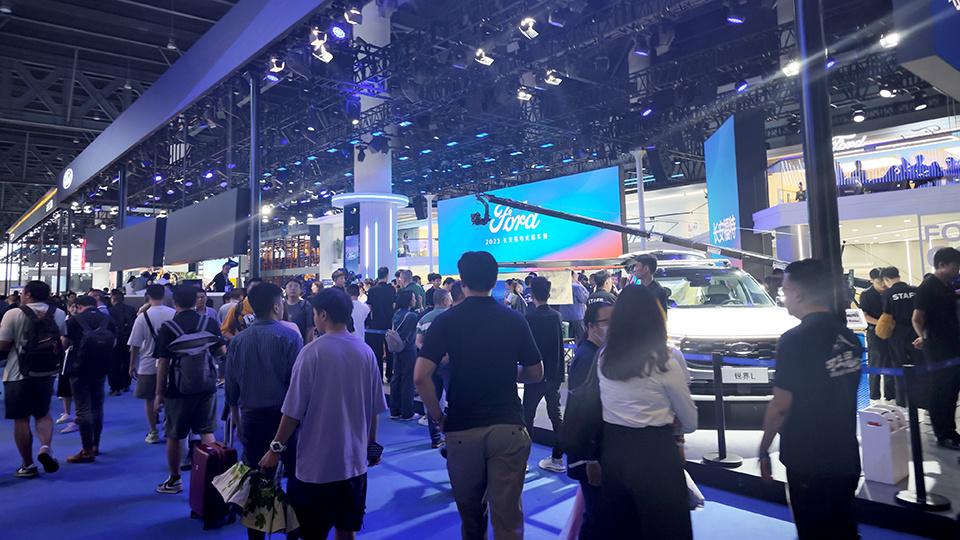 而主打民用的品牌们,用模特何时上场站在车边吸引关注,用展台边直播卖车的主播数量,用展台上观众的表情,这三个维度来交织判断,就有答案。