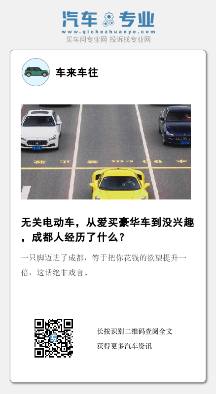 为什么中期改款宝马X5的观众数量众多,这是成都这座城市的特质。“我家有一辆油车,奥迪Q7,有一辆特斯拉,油车我觉得该换了。”是的,成都人并不缺乏消费力,且汽车消费的限制要远低于北上广深杭,所以燃油车Vs新能源这种在网上互相攻击和鄙视链的话题,对心态安逸的成都人来说,大多数时候并不是什么问题。