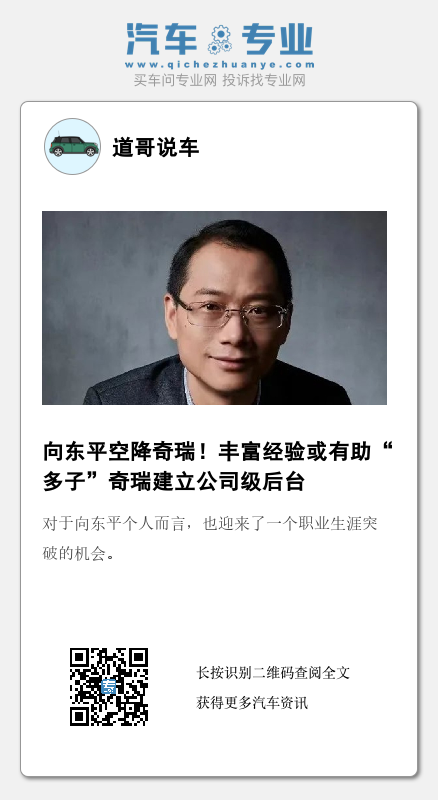 “向东平将出任奇瑞汽车股份有限公司副总经理,兼营销服务中心总经理”,这一消息对于奇瑞目前的体系来说基本和“空降高管”差不多,奇瑞既然把向东平放在如此高的位置,自然也说明了奇瑞对向东平的认可。