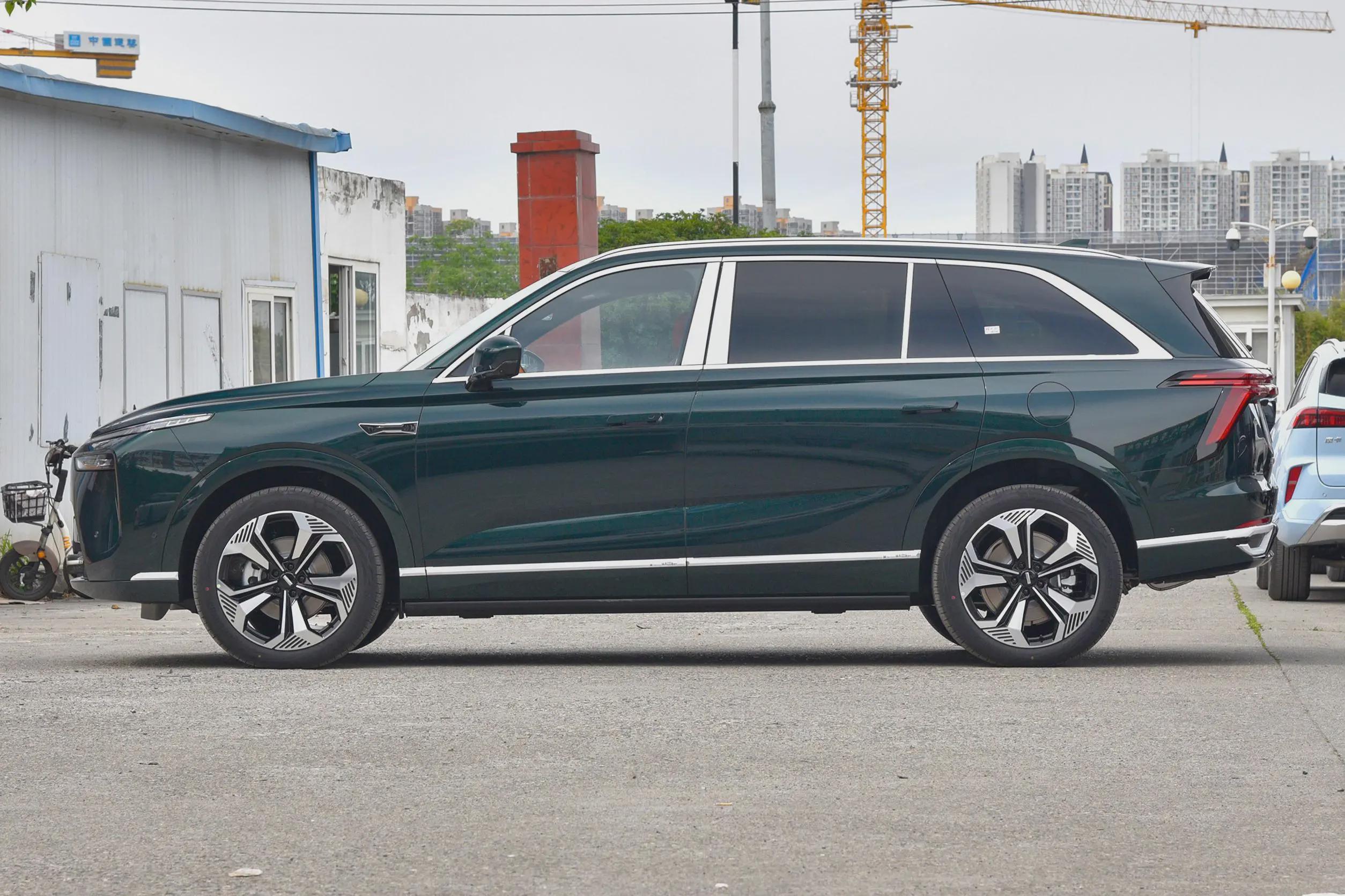 车身侧面延展而流畅,轮廓硬朗。上腰线从前大灯贯穿至后尾灯,下裙线微微倾斜,结合突出的轮眉,提升了几分运动气息。隐藏式门把手是新能源车型惯用的设计手法,对于提升高级感有所帮助。
