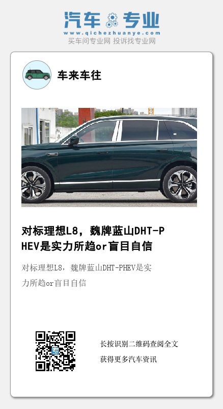 而虽说是“后来者”,魏牌蓝山DHT-PHEV还是颇有一些实力的,身为“前浪”的理想L8,要准备好接受挑战了。