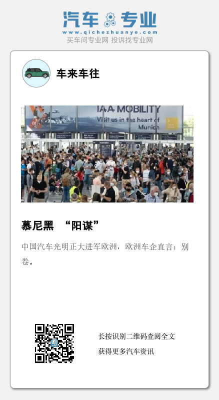 今年的慕尼黑车展,是一次久违的大幕拉开。中国企业历经多年走到台前,终于也轮到中国车企走到了聚光灯下被别人反复提起,被别人反复研究,但是从整个慕尼黑车展的电动化来看,汽车界都开始装备冲刺起来了。也许中国的起步早可以起到一定的时间差优势,但不保证能够持续多久。成本的下降将成为电动车发展出海的最大优势,但并不是不可逾越的鸿沟,毕竟大众赔钱也要走量的决心和庞大的体量,完全可以用钱把路铺平。