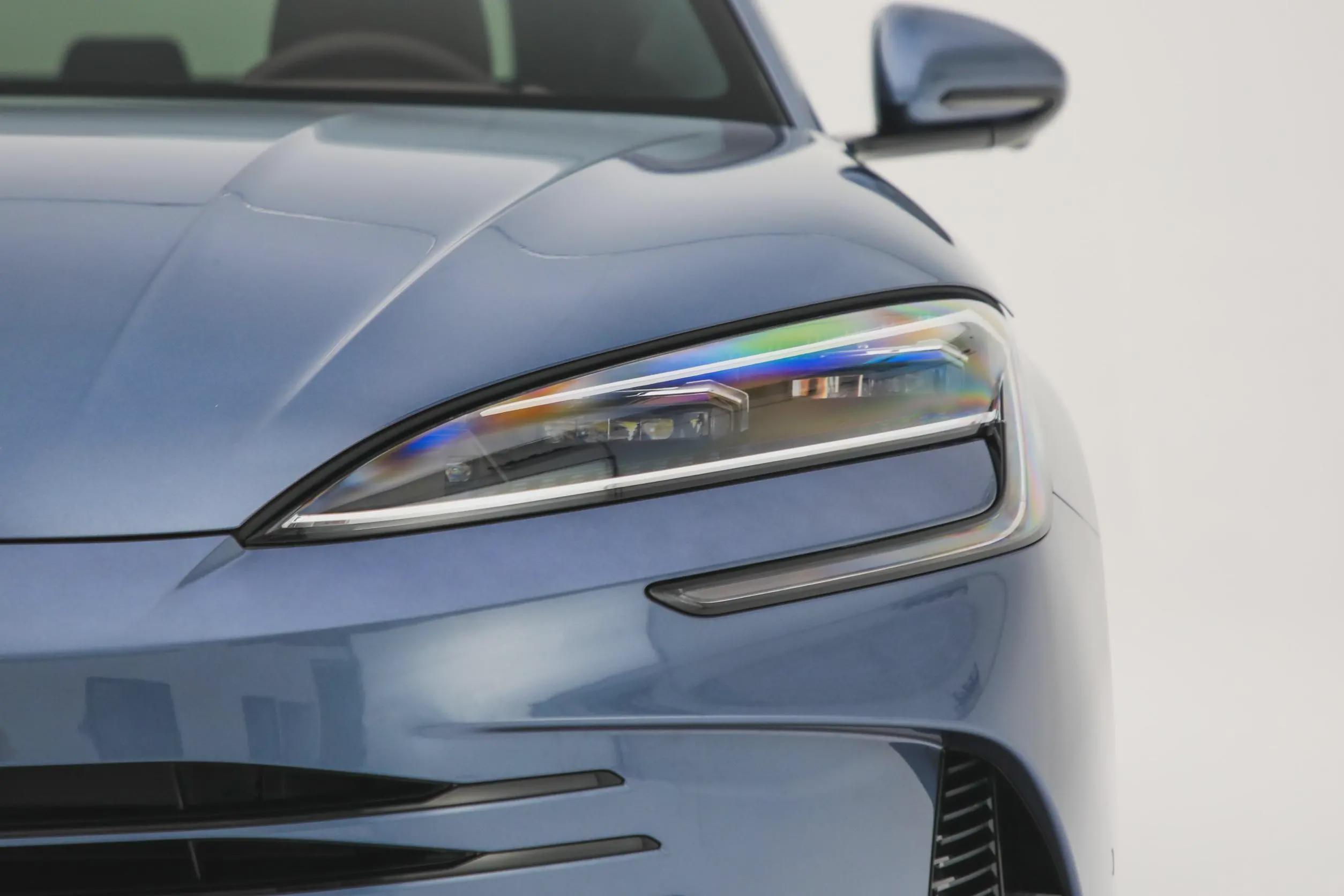 海豹DM-i是比亚迪新上市的全新车型,外观采用了比亚迪“海洋美学”设计风格,车头大灯不但修长,还延伸出灯带,提升了行车辨识度。