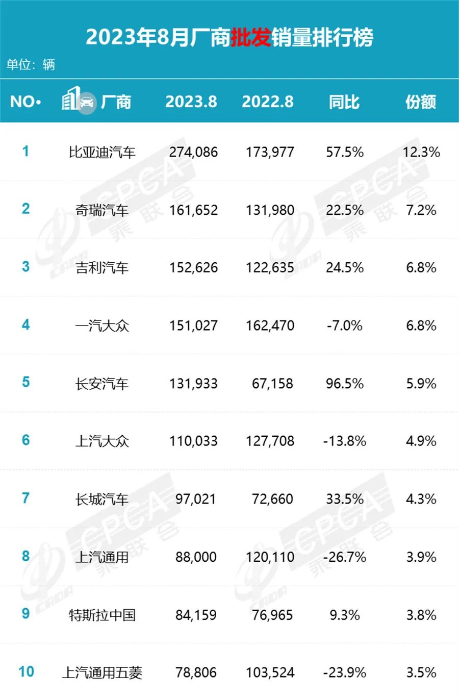 相比合资品牌受累于新能源汽车,自主品牌车企就完全没有这个烦恼,从批售销量来看,几家自主品牌车企的同比增速均较高,甚至从比亚迪超过27万的销量以及57.5%的同比增速来看,很容易给人感觉增长没有瓶颈。
