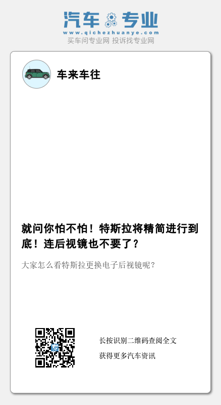 只是希望马斯克这次说的不会像之前的全景天幕一样,看似高级实则鸡肋。电子后视镜的出现也不代表着实体后视镜将会被取代,大概率处于和平共处的状态。大家怎么看特斯拉更换电子后视镜呢?