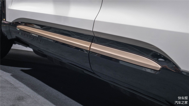 美系车通常喜欢使用大面积的镀铬装饰,前几年在国内也很流行这种风格,不过中国市场变化非常快,好这一口的消费者已经越来越少了。福特探险者赤金版用上哑光带有金属质感的海波金作为装饰点缀,在进气格栅、前保险杠、防擦条等位置都能看到,整辆车的气质变得更高级一些。