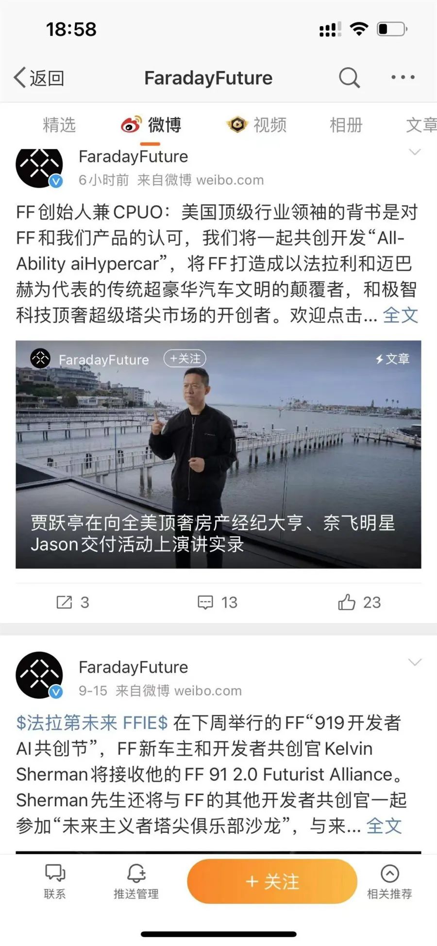而就在9月18日下午,法拉第未来官方微博还发布了贾跃亭在向全美顶奢房产经纪大亨、奈飞明星Jason交付活动上演讲实录,贾跃亭称,“我们还在全力以赴融资,尽快实现产能爬坡。在海外市场成功完成量产交付,并在国内积极造势,看起来,贾跃亭和他的FF似乎离回国真的不远了。