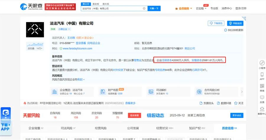 【文/财圈社&道哥说车 麻建宇】天眼查App显示,近日,法法汽车两家关联公司发生工商变更,法法汽车(中国)有限公司注册资本由3.75亿人民币增至4.2亿人民币,其子公司睿驭汽车(北京)有限公司注册资本由1.18亿人民币增至1.4亿人民币。