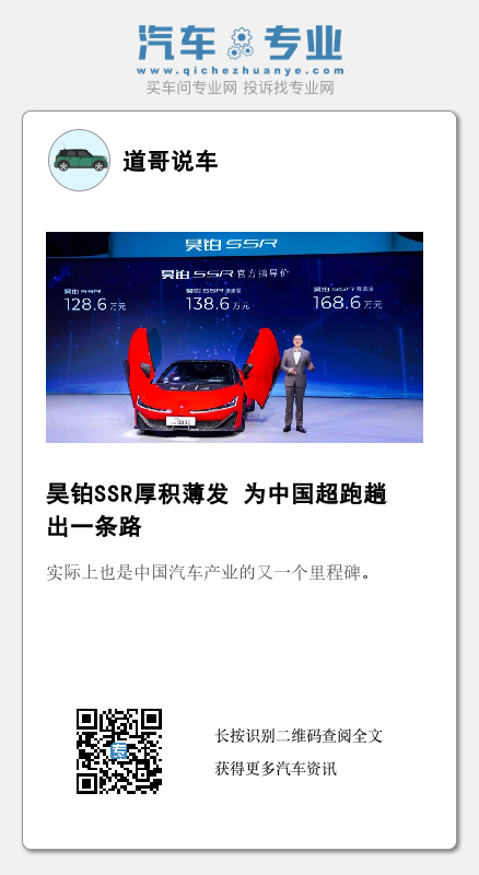而如果换一个角度来说,实际上这也是广汽埃安如今实力的体现。值得关注的是,某种意义上来说昊铂SSR的量产交付也可以被理解为“道”,所谓“道生一,一生二,三生万物”,昊铂SSR也许正是中国超跑的“原点”。