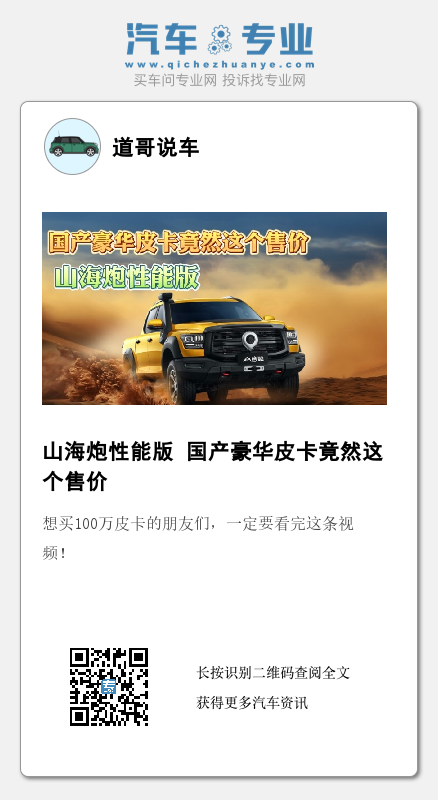 山海炮性能版 国产豪华皮卡竟然这个售价
