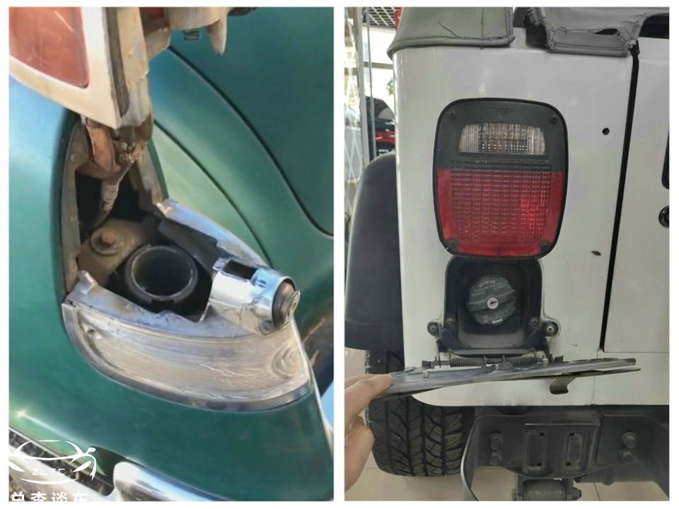左边的绿车是古董级凯迪拉克,右边是牧马人YJ,太奇葩了,特别是凯迪拉克,加油口竟然在尾灯里面,这个位置,油耗子做梦都想不到,每次加油都要把尾灯打开,你说奇葩吗?感觉这个设计堪称一绝,生活中,你见过最奇葩的加油口是什么样的?