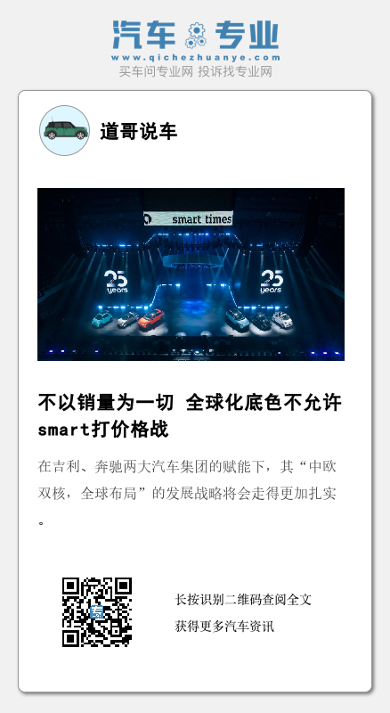 此外,如果打价格战,老车主会感觉背刺。据悉,smart在欧洲的销售有很多是B端,例如融资租赁或大企业、大客户购车,这使得产品残值变成非常重要的概念。一旦在中国市场价格随意波动,可能影响到欧洲市场的产品残值,以及融资租赁合同、月供包括后续市场都受影响。