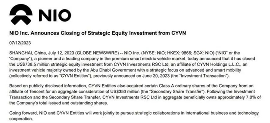 在投资小马智行和宾理汽车之前,中东资本已经多次在国内汽车赛道扫货。就整车企业而言,今年6月,阿布扎比投资机构CYVN Holdings通过定向增发新股和老股转让的方式,向蔚来进行总计约11亿美元的战略投资。几乎同一时间段,沙特投资部还与高合汽车母公司华人运通签署了一项价值210亿沙特里亚尔(约合56亿美元)的协议。