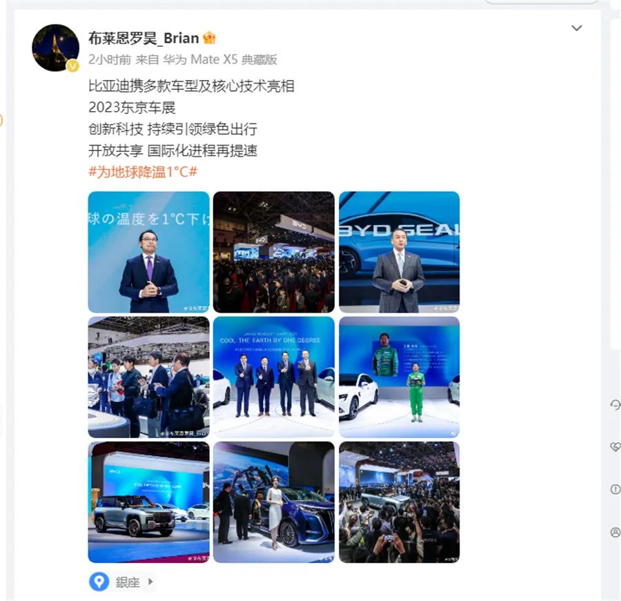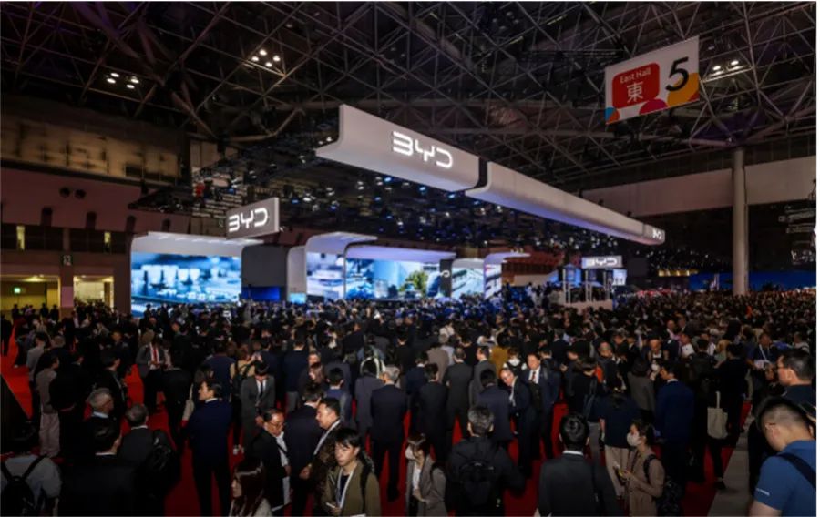据了解,在本次东京车展,比亚迪携元PLUS、海豚、海豹、仰望U9、腾势D9在内的五款新能源车型,以及刀片电池、e平台3.0等核心技术亮相。