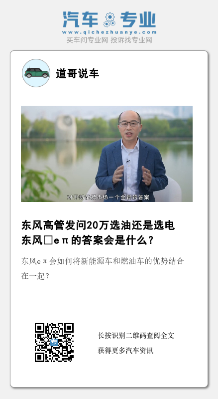 值得一提的是,几天之后,陈昊的视频又出来了,而在最新的视频中,陈昊给出了自己的思考:无论新能源车还是燃油车,他们的确各有优势,消费者需要的是,把两者融合在一起的产品。与此同时,陈昊也为不久后即将上市的东风eπ做了“预热”:“无论哪一派,最后选eπ”,而这句话显然就是陈昊上述灵魂拷问的答案。