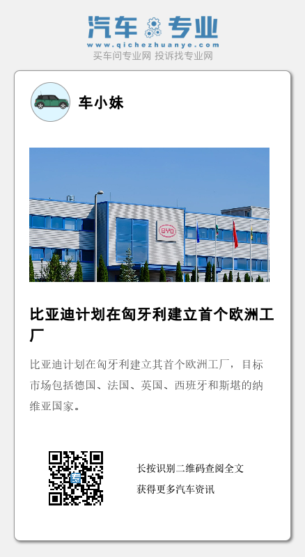 据外媒报道,中国电动汽车制造商比亚迪计划在匈牙利建立其首个欧洲工厂。据外媒引述的匿名消息来源,比亚迪已经做出了这个决定。