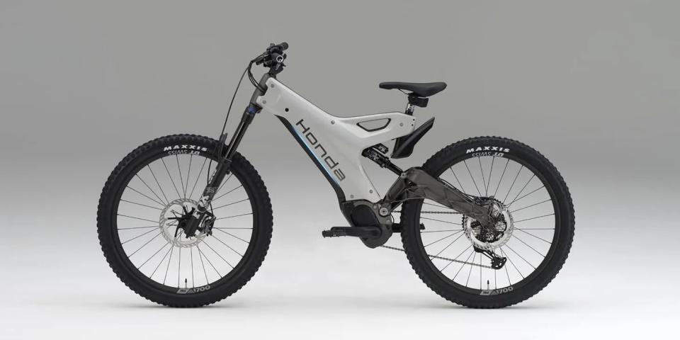 这款全悬架电动自行车采用 SRAM Eagle AXS 传动系统、Shimano 液压盘式制动器、Fox 前后悬架、RockShox Reverb 升降座杆、DT Swiss XM 1700 车轮和 Maxxis Minion DHF 轮胎。对于本田来说,目标是将摩托车和自行车体验结合到一个可以应对山区地形的产品中。