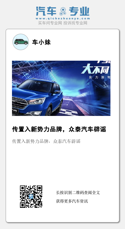 11月8日传出众泰汽车本周置入新势力品牌汽车”的传闻。对此,众泰汽车投资者关系部对外的回应是,“没有收到这一消息。”