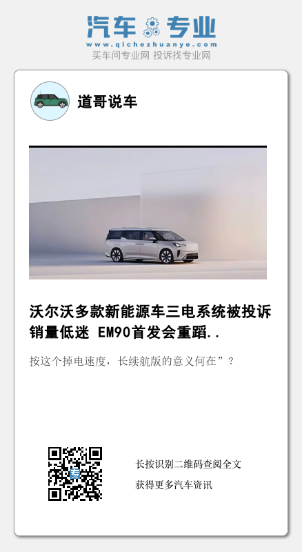就以上投诉来看,沃尔沃新能源车型卖不好,或许也不全是“油改电”刻板印象以及EX90、EX30未如约而至的原因。此外,如果以上问题出现在一款纯电的沃尔沃EM90上,又该如何是好,毕竟纯电车型充满不断电、电池模组故障、“纯电模式中断”的影响可能比插电混动车型更大。