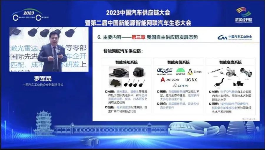 中国汽车工业协会专务副秘书长魏文清在演讲中虽丝毫不避讳对中国智能化领域供应商的认可,但也还是提醒称,“我们还要清醒地认识到,我们可能还存在许多短板,例如长期以来一直过度依赖进口的操作系统和软件,没有先进芯片制程制造能力”。