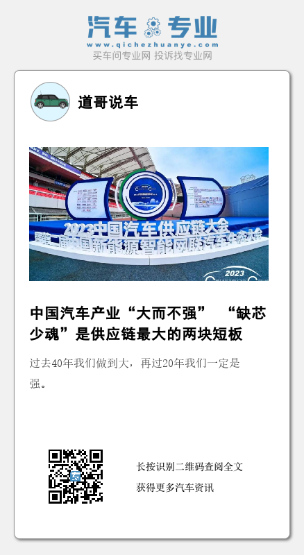 【文/财圈社&道哥说车 麻建宇】“大家都很清楚,我们的汽车产业现在只能说大,还不能叫强”,2023中国汽车供应链大会上,中国汽车工业协会专务副秘书长罗军民在演讲中如是说。