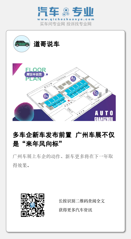 【文/财圈社&道哥说车 麻建宇】广州国际汽车展览会也就是广州车展,历来被业界冠以“来年车市风向标”的殊荣,究其原因无非是其往往开幕于年度的最后一个季度,广州车展上车企的动作、新车更多将在下一年取得效果。