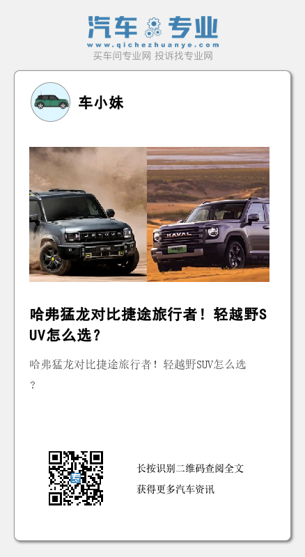 或许在产品研发之初,两者就互视对方为主要竞争对手,一番解读下来,两款产品在很多层面都展现出了相同的产品思路,这也是目前国内硬派越野SUV领域呈现出的趋势,是好是坏还得等后续市场给答案,至于这两款产品如何选择,还得看你个人的核心需求是什么,捷途旅行者的舒适体验和科技体验会更为出色,而哈弗猛龙的智能体验和驾控体验会更好。