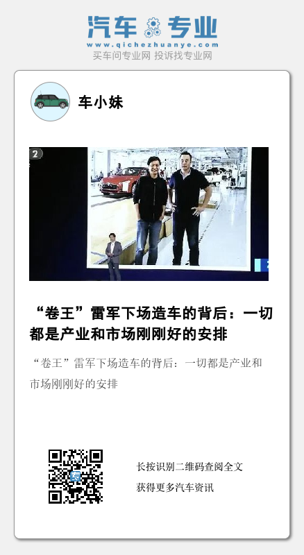 同为国内第一批特斯拉车主,李斌和李想拿到车钥匙不久,就各自创立了蔚来汽车、理想汽车,两人已经在市场上摸爬滚打了快十个年头了,而雷军为年轻人制造的第一辆车终于在工信部拿到了“准生证”。