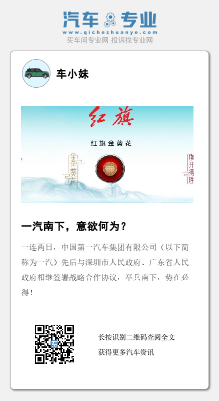 正因如此,根据一汽党委书记、董事长邱现东分别于28日、29日的发言,“一汽将充分利用深圳科技和产业创新优势,加大在深汽车技术研发布局”,并“结合广东创新能力强劲、产业基础扎实、市场规模较大等优势,进一步扩大在粤投资布局”,从而致力打造一个世界一流汽车企业。