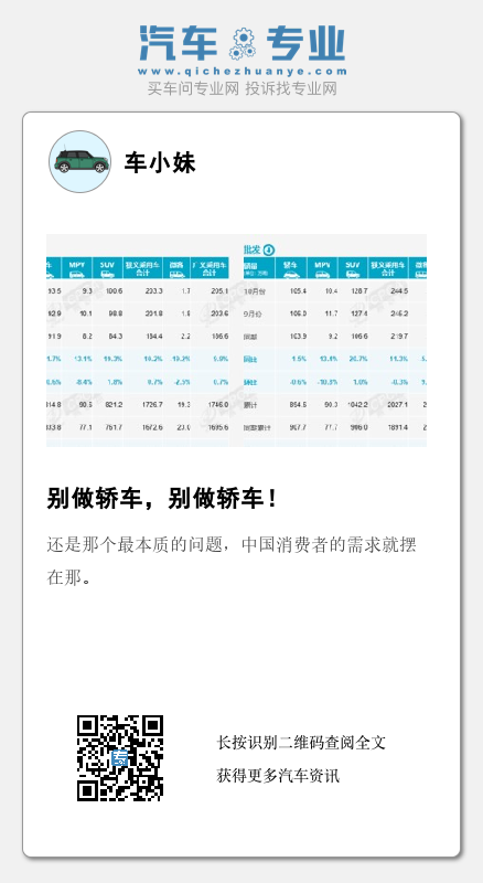 从中国汽车品牌长久的表现也能看出,自主轿车能做到15万元级别的水平,既能展现品牌力又能兼顾销量的,就基本上是天花板而且车型寥寥无几。也就是说对于中国汽车品牌而言,轿车在综合实力上更“难搞”,SUV则面临着可观的市场容量。