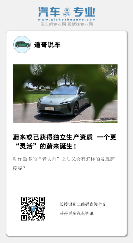 相比之下,蔚来汽车作为造车新势力中的“老大哥”似乎有些落后了。不过,随着蔚来汽车科技(安徽)有限公司出现在“车辆生产企业信用信息管理系统”中,蔚来的独立生产资质也终于有了眉目,而这或许也将让蔚来汽车的发展进入新的高度,尤其是蔚来汽车的自主发展或许将因此获得更高的“灵活度”。