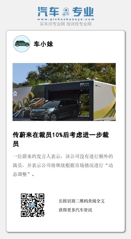 针对上述消息,一位蔚来的发言人表示,该公司没有进行额外的裁员,并表示公司将继续根据市场情况进行“动态调整”。