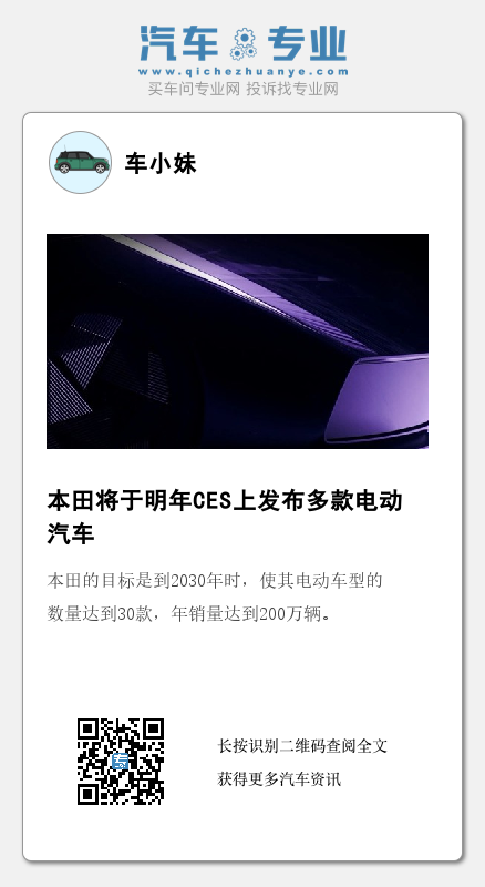 据外媒报道,虽然明年的消费电子展(CES)上与汽车相关的消息似乎不多,但是日本汽车制造商本田表示,该公司将利用这次展会推出全新的电动汽车系列。12月6日,本田发布了首张预告图。