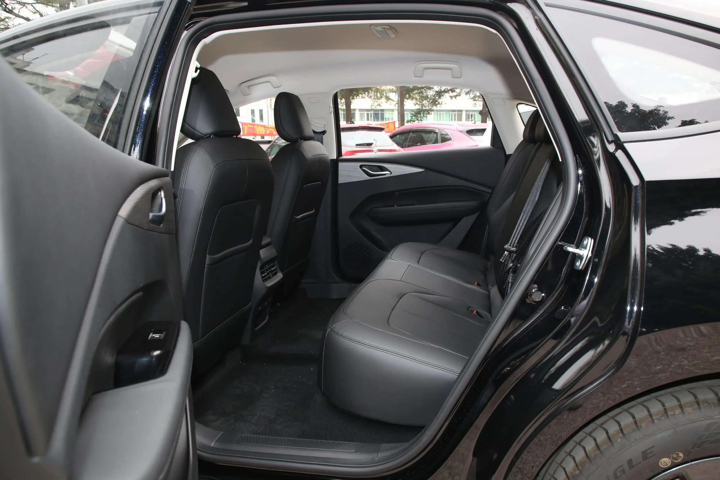 车身侧面,五菱星光PHEV得益于4835mm的车身长度,显得十分修长,侧面的线条十分锋利,门把手采用的是隐藏式的半拉门把手设计,符合新能源车型的定位,17英寸的铝合金轮毂造型时尚美观,前/后轮胎规格尺寸均为215/55 R17。秦PLUS DM-i的侧面显得有些紧凑,不过整体的比例还算协调,车窗下沿配备了镀铬装饰条,提升了一定的档次感,车门下方的折线处理突显出一定的层次感,16英寸的铝合金轮毂造型时尚美观,前/后轮胎规格尺寸均为225/60 R16。