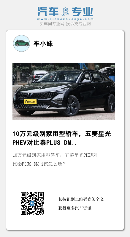 小编总结:经过以上分析,上汽通用五菱旗下的五菱星光PHEV在车身尺寸、内部空间、续航能力方面要优于秦PLUS DM-i,同时后悬挂采用的是多连杆式独立悬挂,比秦PLUS DM-i的后纵臂扭转梁式非独立悬挂在舒适性上会更好一些,而比亚迪秦PLUS DM-i则是在科技配置、动力水平方面以及品牌影响力要更有优势。